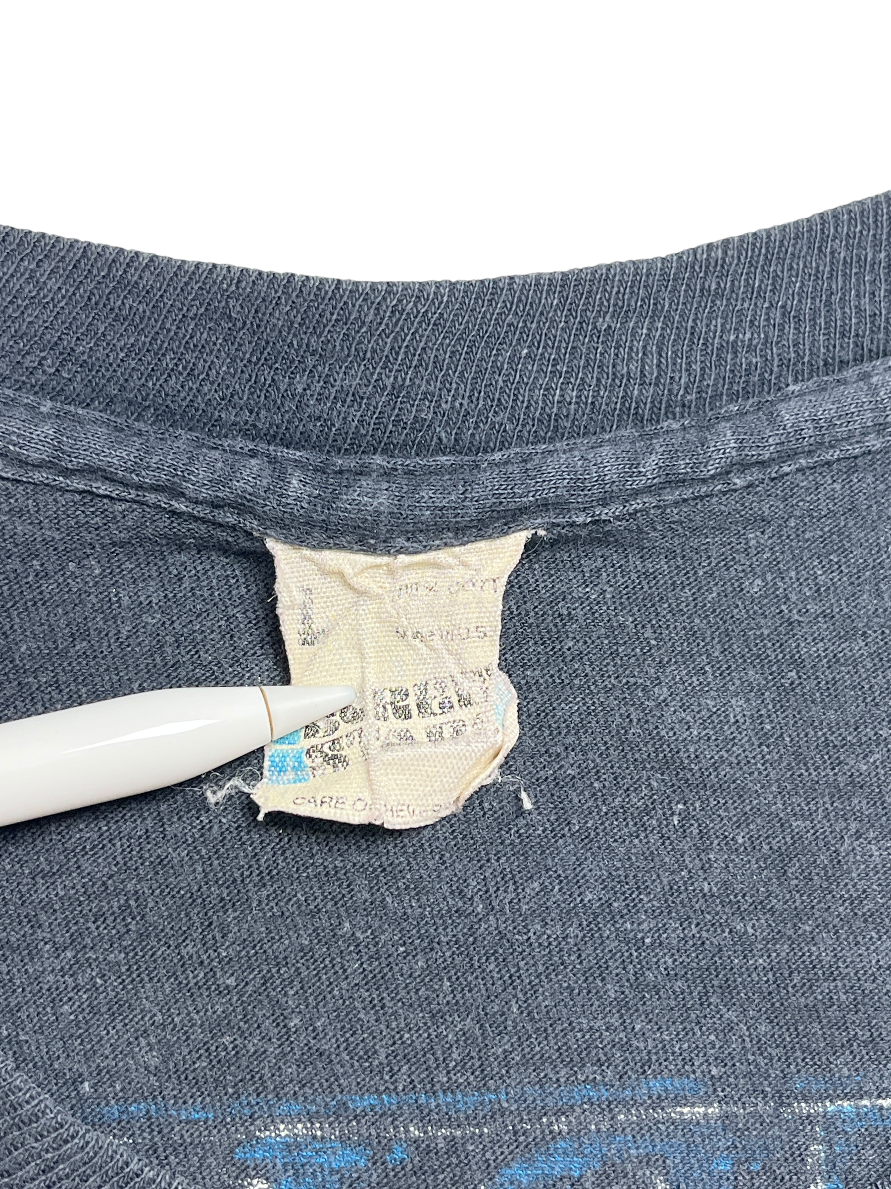 • Condición: Buen estado. La camiseta presenta un deslavado visible debido al uso normal y al paso del tiempo, lo que añade a su carácter vintage. Algunas pequeñas manchas y un pequeño hueco, ver fotos.